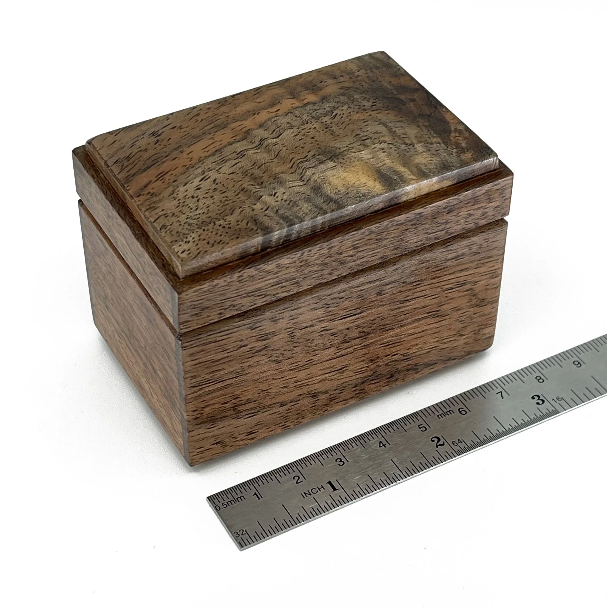 I’ve been making little walnut boxes over the past few months. I mean really little — they’re just 2 1/4” tall x 3” long x 2” wide — big enough to hold a special ring or two or maybe a pair of earrings.